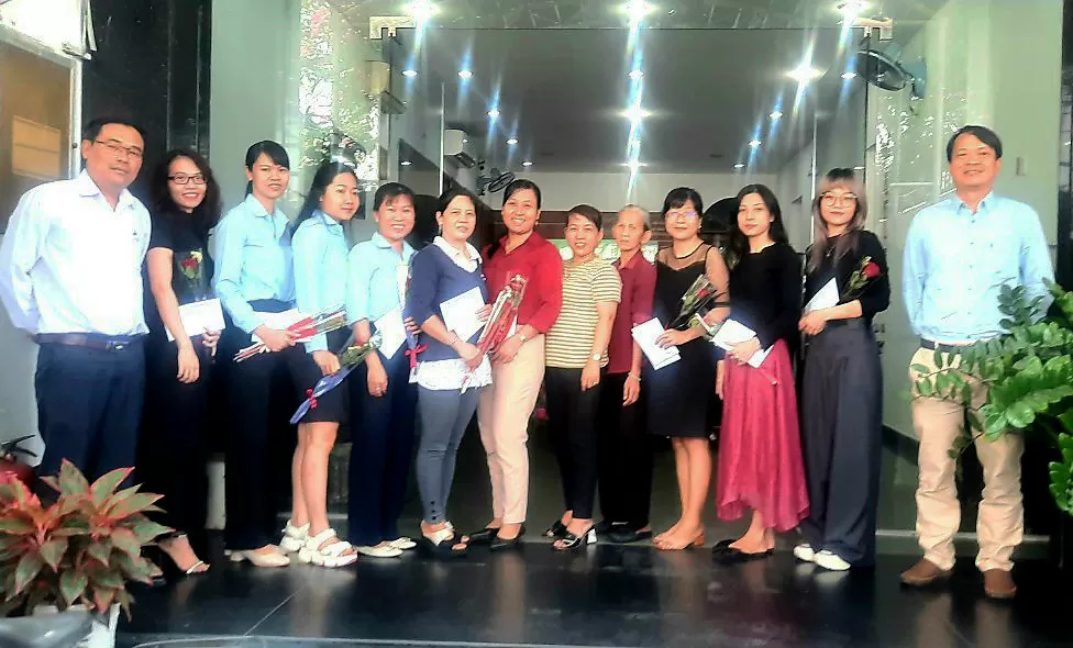 Hình tập thể chị em khối văn phòng cùng ban lãnh đạo công ty